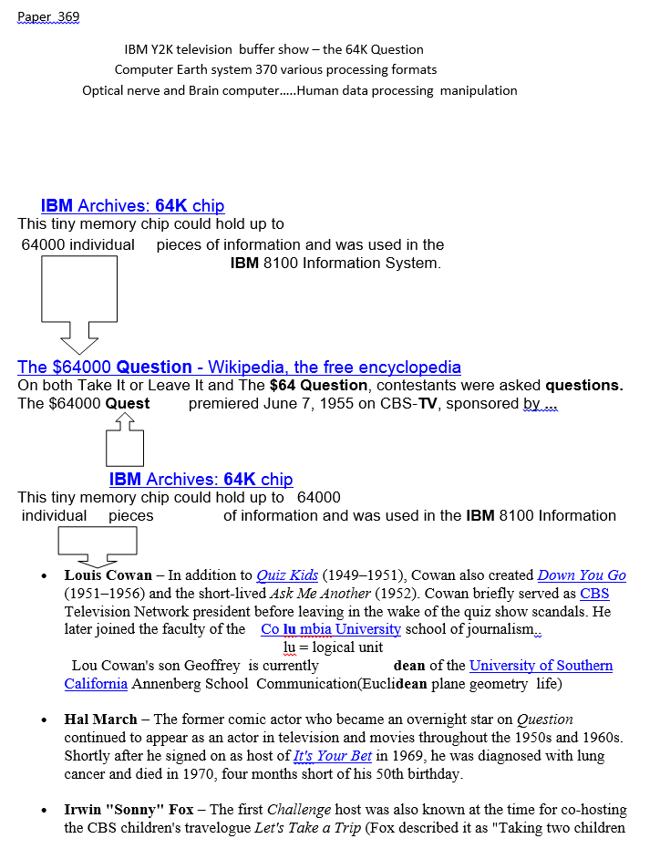 Thus…in a sense..we have an information systems flowchart ..or EVENTS with common denominators that tie them together … a probably of some things LINKED together … predicted by string theory.